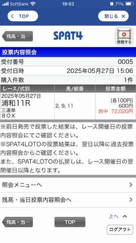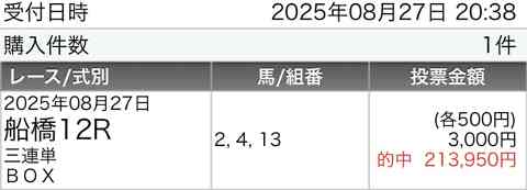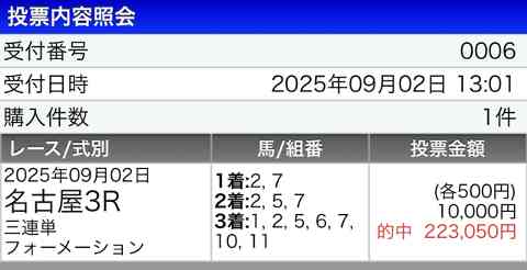 いつもの投票に、ヒモ荒れしそうと思いアーリー指数下5頭の、3連単BOX