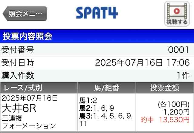 7/16的中馬券