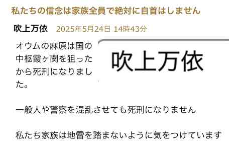 私たちの信念は家族全員で絶対に自首はしません。吹上万依