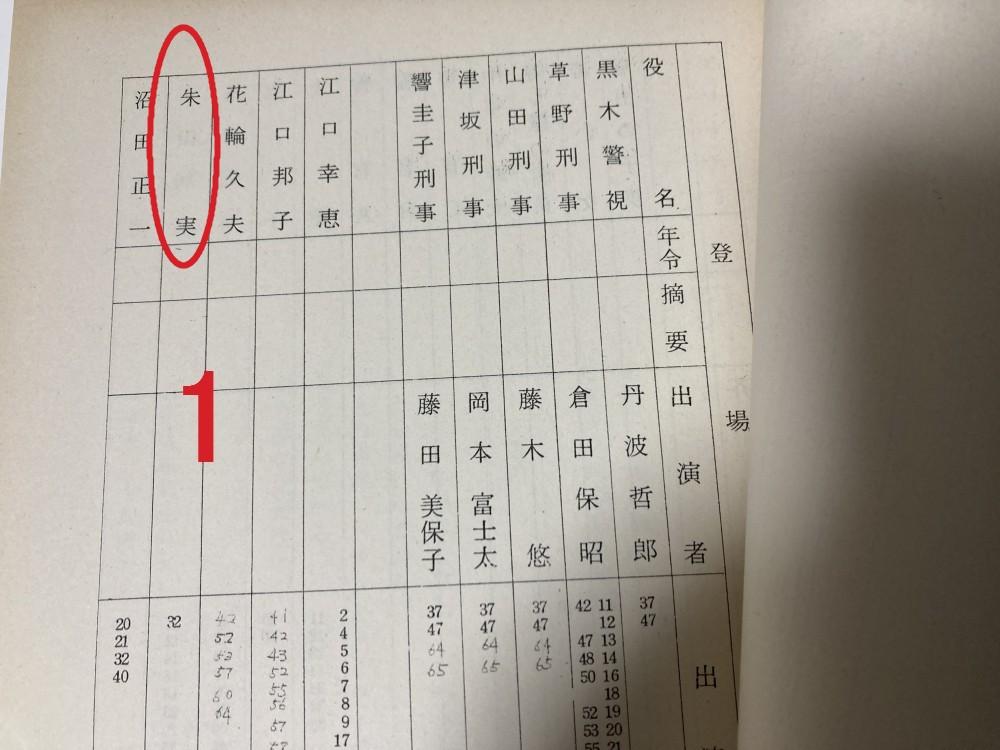 【和服姿の水商売の女で、以前草野が朱実のヒモ(暴力団員)を逮捕したことがあったという設定。】