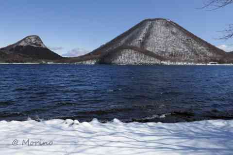 今年は榛名山に4日降った雪景色でした。結氷も全て解けて空・榛名富士・湖面・湖岸と色分けが良かったです。