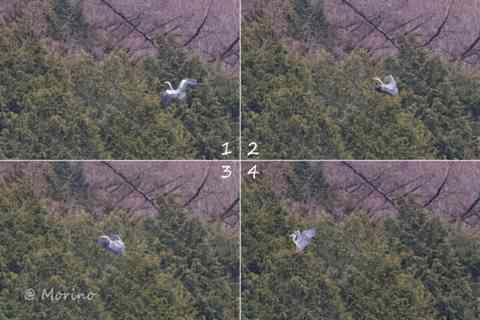 アオサギ、かなり遠くの樹木へ秒7枚連写から
