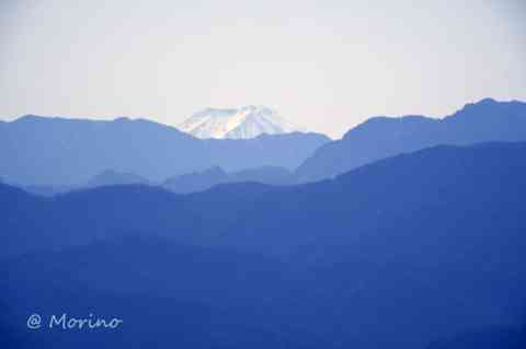 風が強く帰る途中で村内の富士見峠から富士山撮影と車の外へ、霞んで肉眼でもやっと見える程度