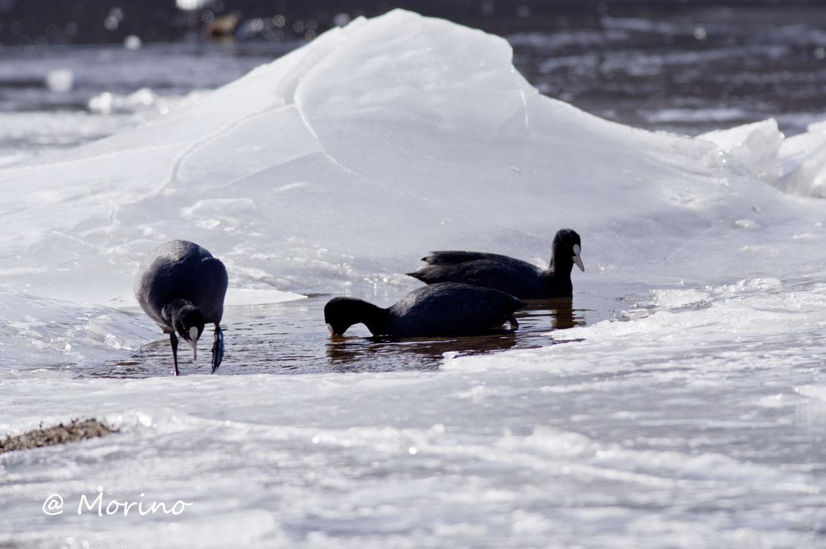 結氷の範囲が大きくなり、種を問わず狭い範囲で一緒の群れになったり、中には集団から離れて