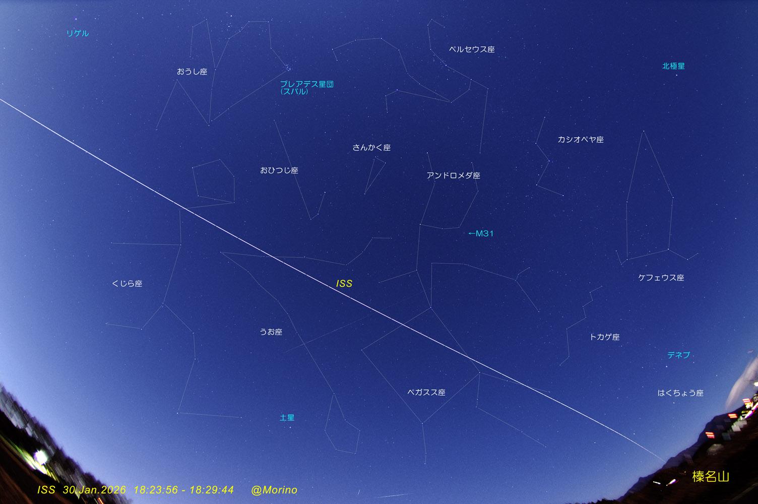 2026年の国際宇宙ステーション光跡初撮影を昨日(1/30)、天候晴れの予報も満月3日前の明るい空になり