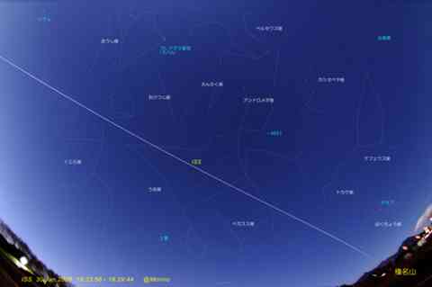 画角から月を外して、レンズ方向西から南へ15度仰角60度で、北西(榛名山)から現れ南西天頂から30度