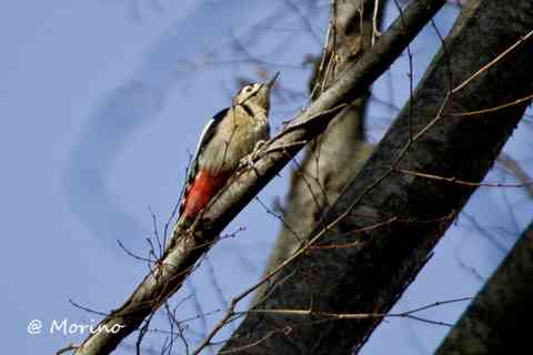を準備、途中樹木の高い所でアカゲラ、ズーム300mm手持ちでブレ画像に・・・