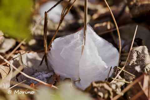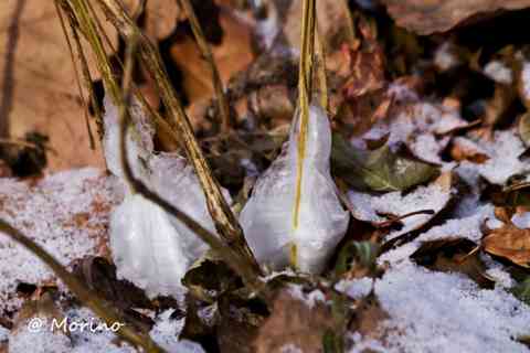 シモバシラの茎に広がるシモバシラを見たくて赤城自然園に変更、出掛ける時間が遅くなりシモバシラは