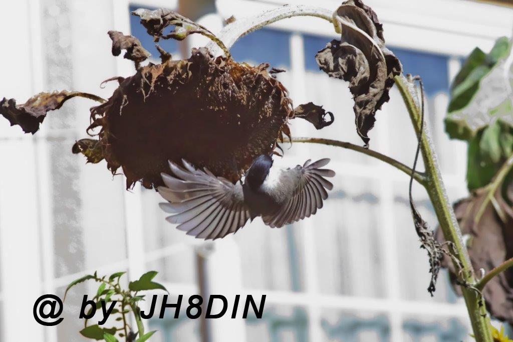 テスト撮影画像で自宅庭のヒマワリに来るシジュウカラも一緒に届きました。
