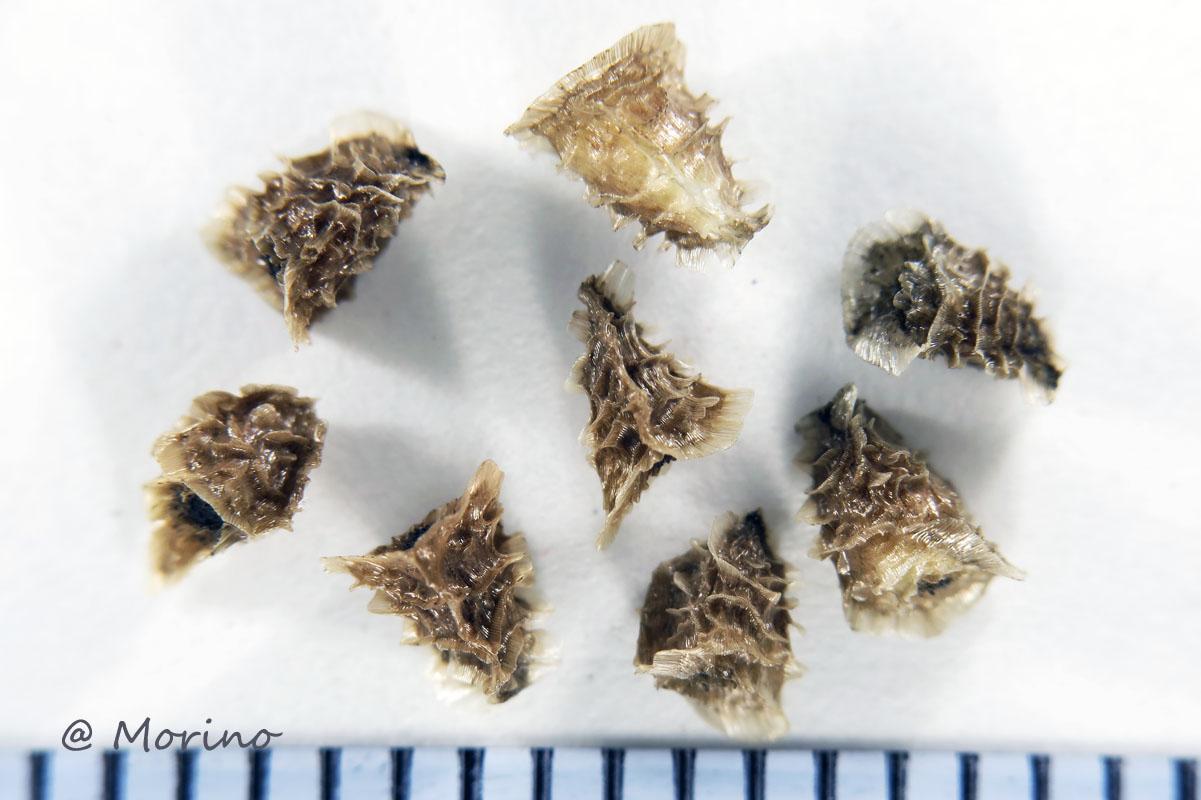 デジ一+100mmマクロを用い、10mm位の台の上に方眼紙(1mm方眼)を敷き種子を載せて撮影、工夫が必要でした。