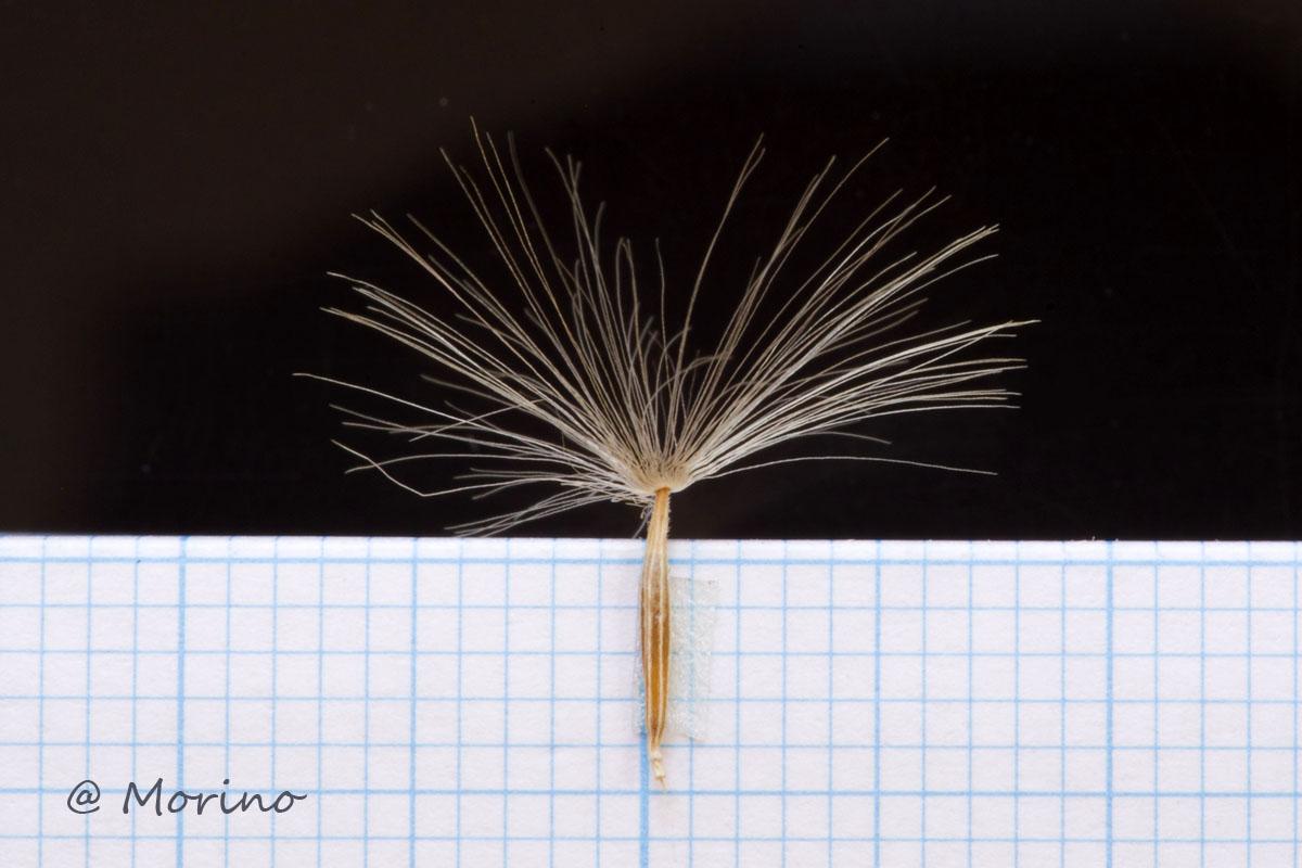 アサギマダラの食草、クサタチバナの種子を見つけ、フイルム用ルーペ+コンデジでは、冠毛(綿毛)が大きく膨らみ