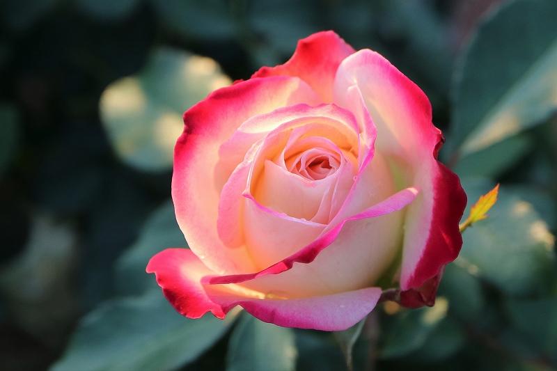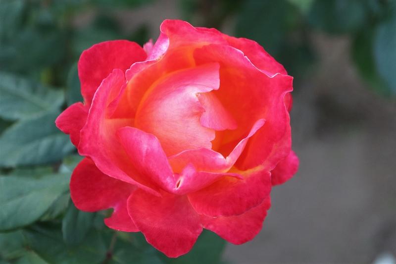 まえばしのバラで「あかぎの輝き」は花弁の色が黄色からオレンジ、赤へと変わっていく綺麗なバラでした。