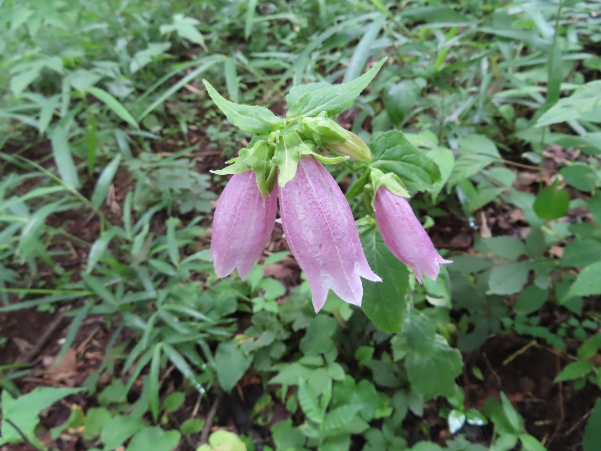 家の近くの雑木林にポツンと咲いていました。ホタルブクロではなくヤマホタルブクロだと思います。
