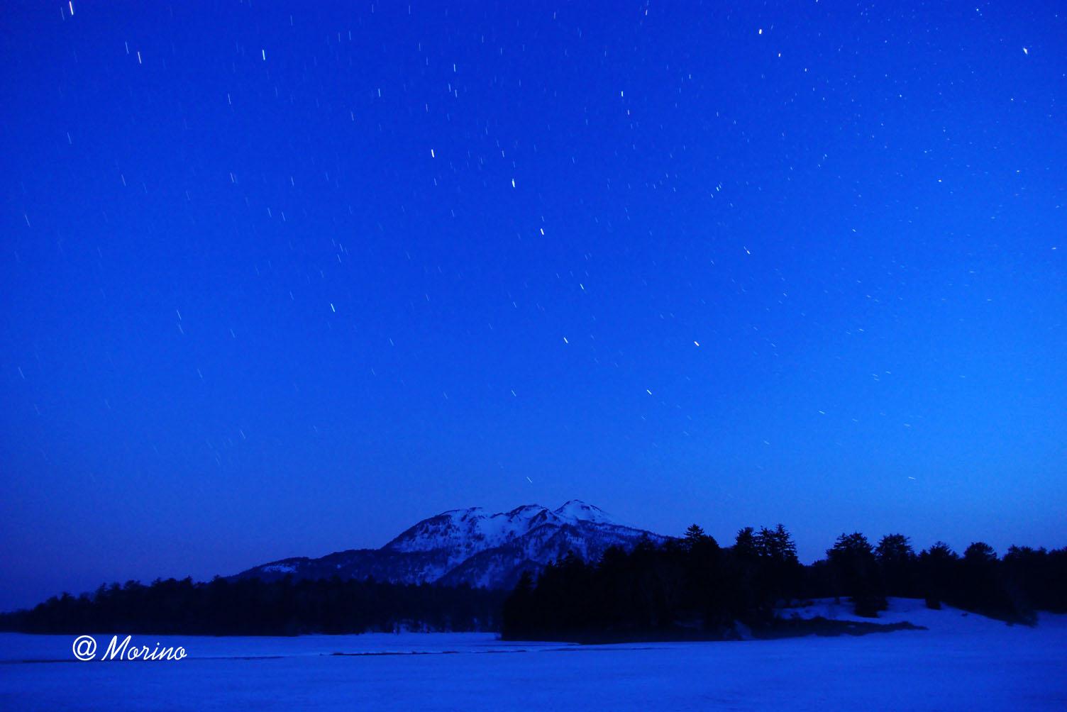 4月下旬は夜明け前、燧ヶ岳の背後に沈むおおぐま座、北斗七星が観望出来る。