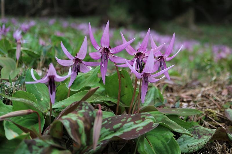 群落です カタクリの別名は「堅香子(カタカゴ)」私はこの名が好きです 中には白い花も幾つかありましたが