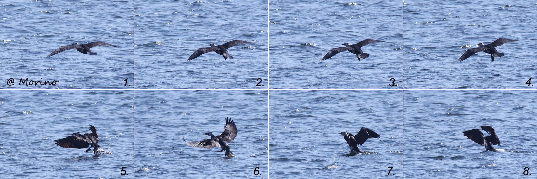 湖面に着水する様子、シャッター 1/1000秒、手持ち両眼視撮影(750mm相当)で追いながら連写