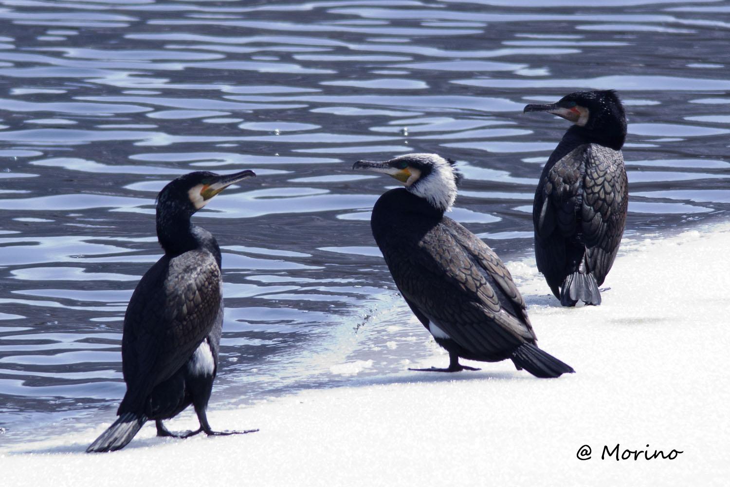 カワウが時々姿を見せ、潜水から結氷に上がり休憩。