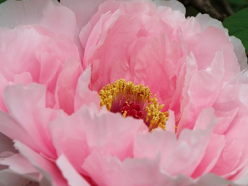 花粉だらけで出てきたクロウリハムシ?こんな虫はいままで牡丹についていた事はありませんでした 花の中には数匹います 花びらを食べられているのも初めてです。