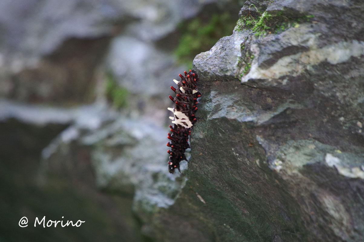 ウマノスズクサが有る岩場で、大きくなった幼虫が蛹になる場所をさがして岩の上を行ったり来たり、面白い写真が