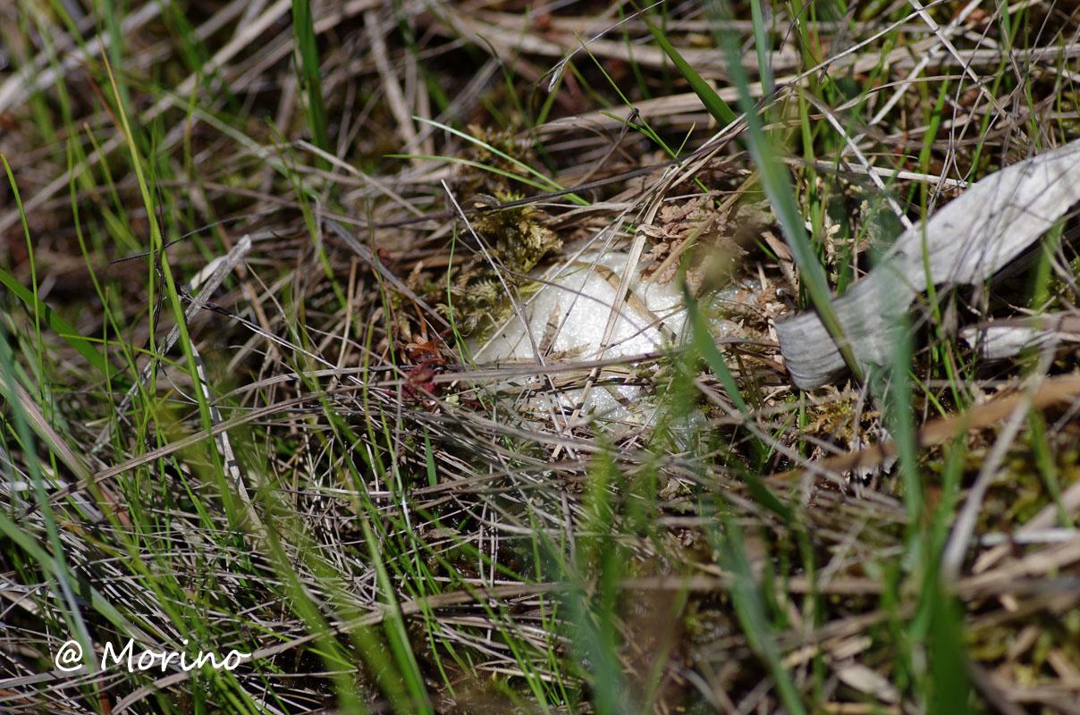 モリアオガエルの産卵(卵塊)は樹上で見ますが、尾瀬ヶ原では何度か産卵に適した池塘では樹木が無く、池塘の縁で卵塊が中で