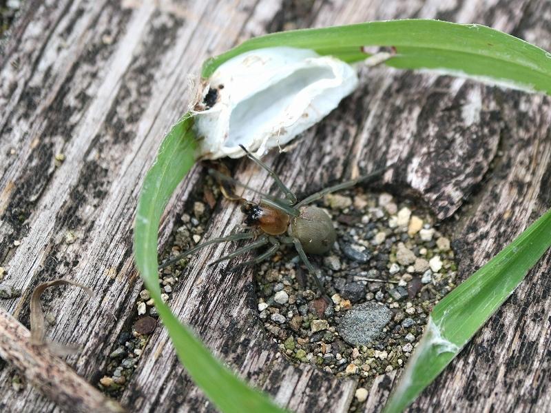 ネットによると巣の中で卵を100個ほど生み 母蜘蛛は卵からかえった赤ちゃん蜘蛛に生きている自分の体液を吸わせて育てる 自分の命を子に捧げるのです ああ何ということを・・もう言葉がありません・・・