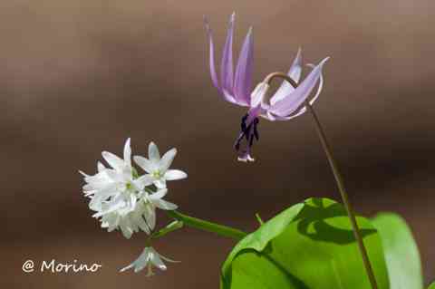 カタクリとツバメオモト 300mm+X1.4Conv (35mmフイルム機で630mm相当)