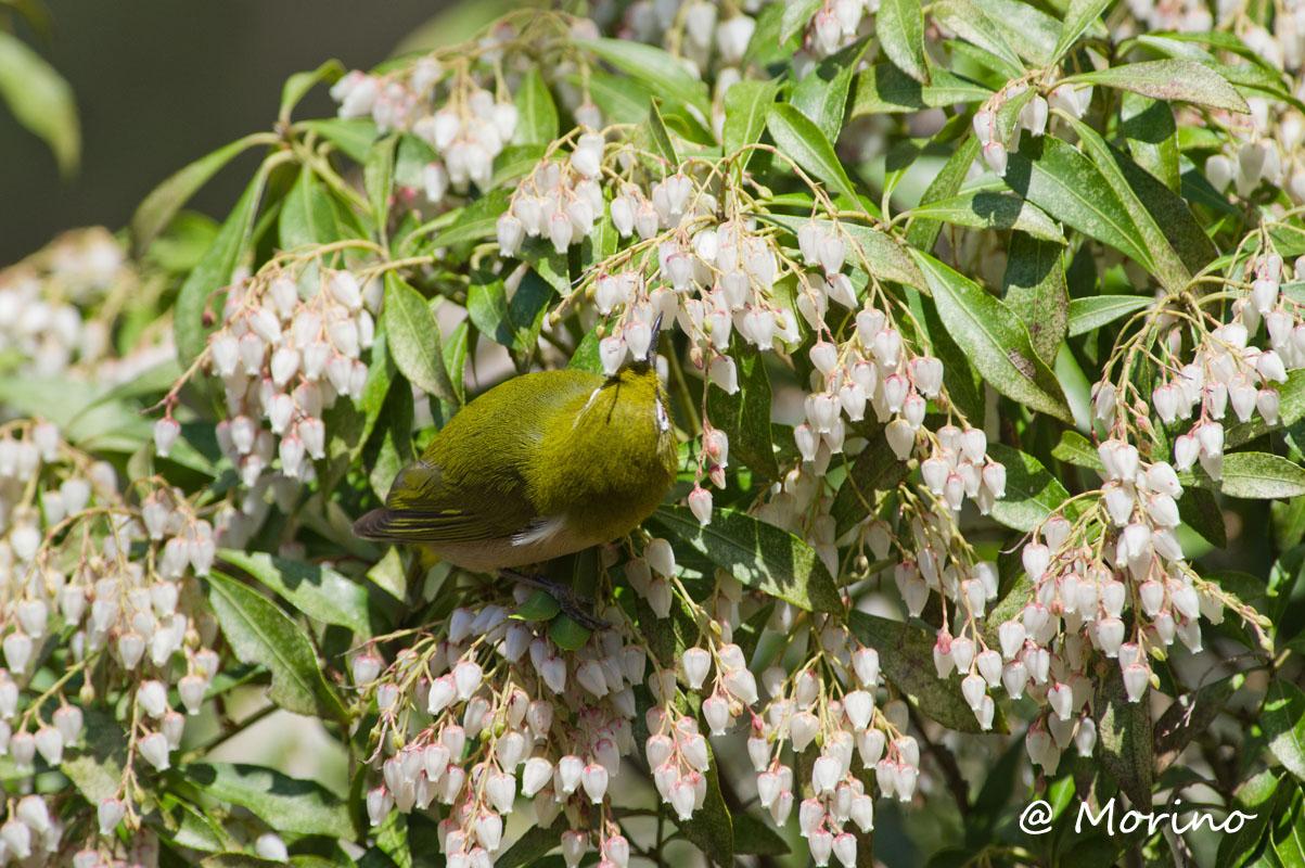 アセビで吸蜜?なかなか顔を出してくれないメジロ 300mm+X1.4Conv (35mmフイルム機で630mm相当)