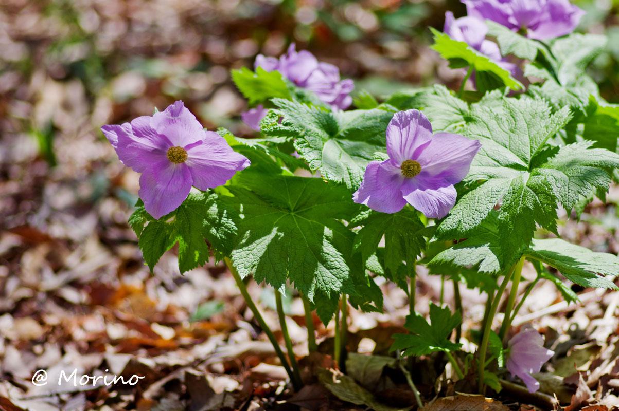 シラネアオイ、散策路から気に入った花が少なく、影が多く内蔵ストロボ使用