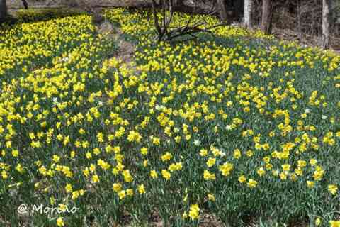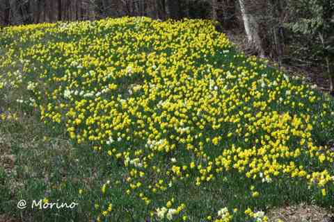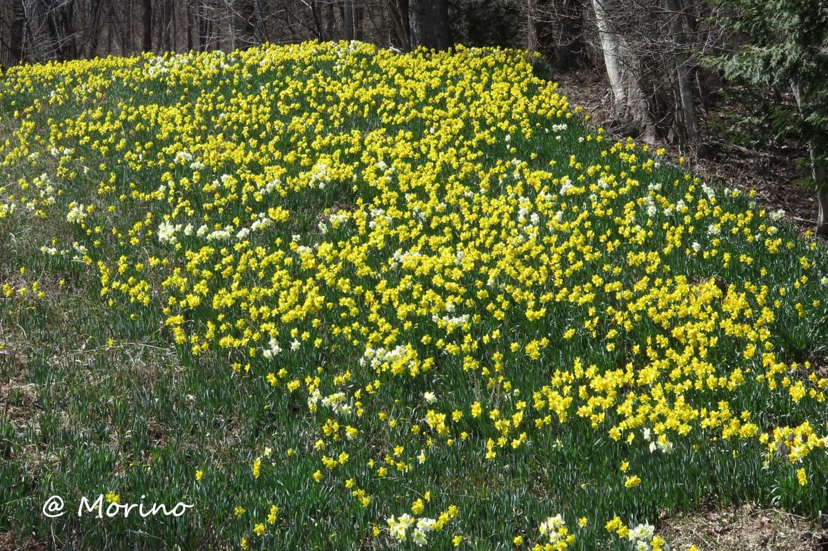 10時近く到着、暖かくなり行楽シーズン到来でオートバイや車の数も多く散策も安全第一で、湖畔の宿公園周辺のスイセンは見頃で