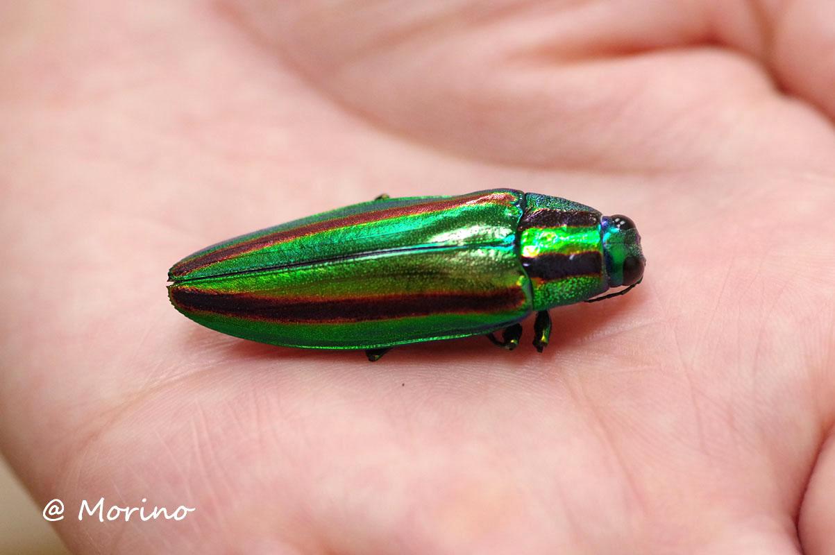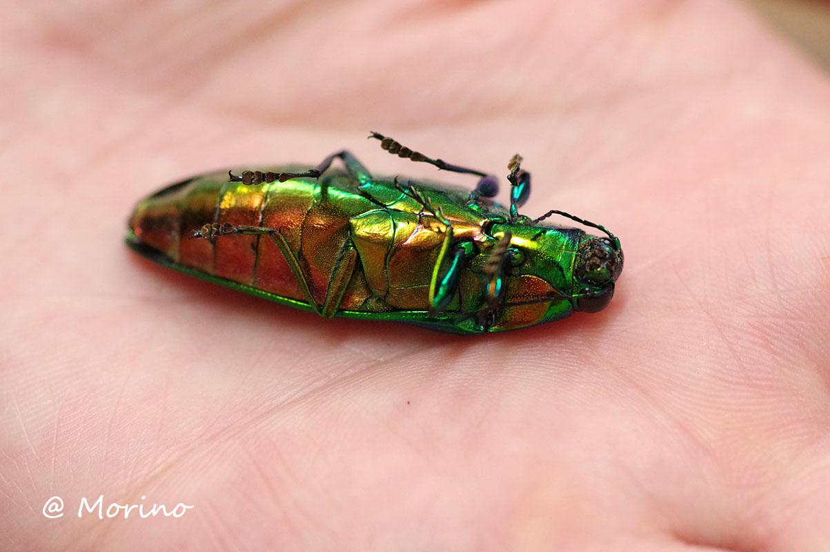 ランチタイムにお会いしたスタッフから、息絶えていたタマムシを園内で発見と