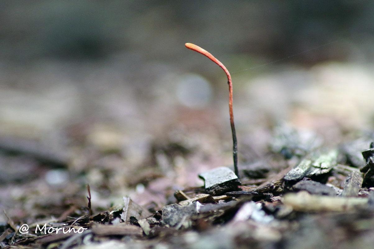 細く小さいので発見が難しい・・・ カメムシタケの地表に出ている様子