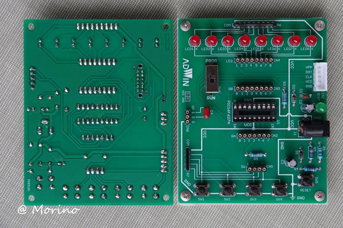 画像:部品取付と半田付が終わったC言語入門キット基板の表裏