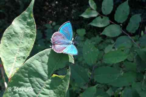 下山途中アサギマダラ2頭飛翔、ウラジャノメ、ミドリシジミ等、画像は妻から借りたSONY DSC-W830、ピントがなかなか合わない。