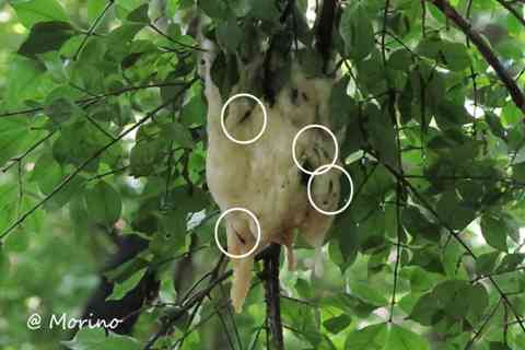 ミズスマシの池で割と近かったモリアオガエル卵塊、上の卵塊部分のオタマジャクシを見やすく、次の画像は等倍切取り
