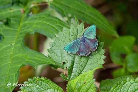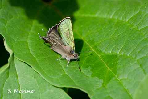 ミドリシジミ4、巴戦が何度も見られ翅が徐々に傷む様で、また見る方向で翅の色調も変化