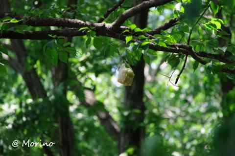 モリアオガエル卵塊が今まで一番高い所に、池のほぼ中央近くの上で7~8メートルは有りそう。