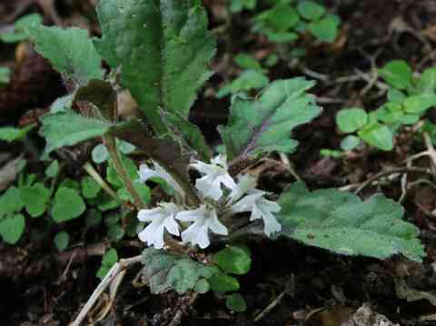 コバノタツナミソウ ツノハシバミの木の下にかたまって咲いていました。