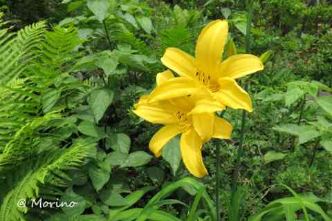 緑の中、優しい色のニッコウキスゲ
