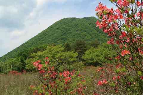新緑の相馬山とツツジ