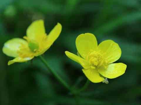 キンポウゲ(別名ウマノアシガタ)ともいう 沼ノ原にはキンポウゲは沢山咲いていました 右の花の下に小さなシャクトリムシが尺をとっていました。