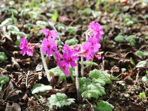 コバノタツナミソウ ツノハシバミの木の下にかたまって咲いていました。