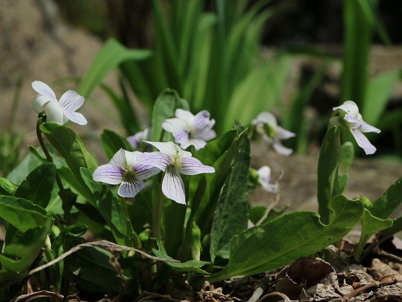 アリアケスミレ 花に紫のすじが入り 葉が細長いのであまり間違える事はないです。
