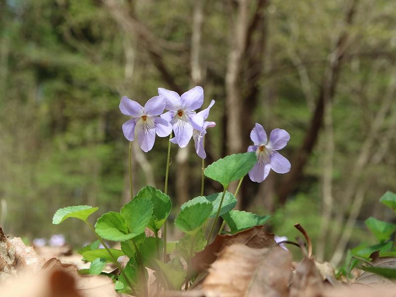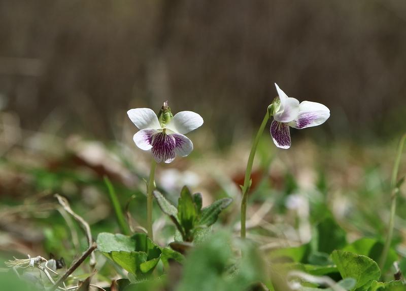 オトメスミレ 牧野富太郎博士が箱根の乙女峠で発見したことに由来する 距が少しピンクがかっている。