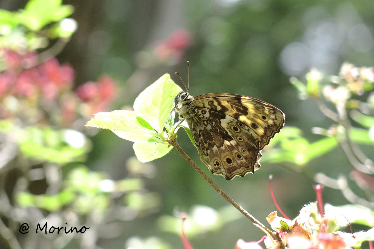 背後のツツジにサトキマダラヒカゲが一頭、そこから尾根の道へ出るササが多い所で、アサギマダラ1頭が飛翔