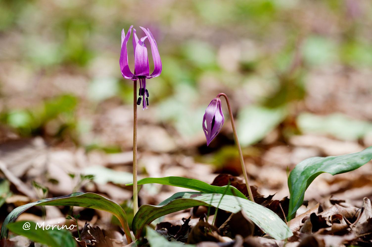 楽しい散策、昨年開花直前に蕾が提灯の様に膨らんだカタクリを見つけ、散策路左右を見ながら、でもなかなか見つからず