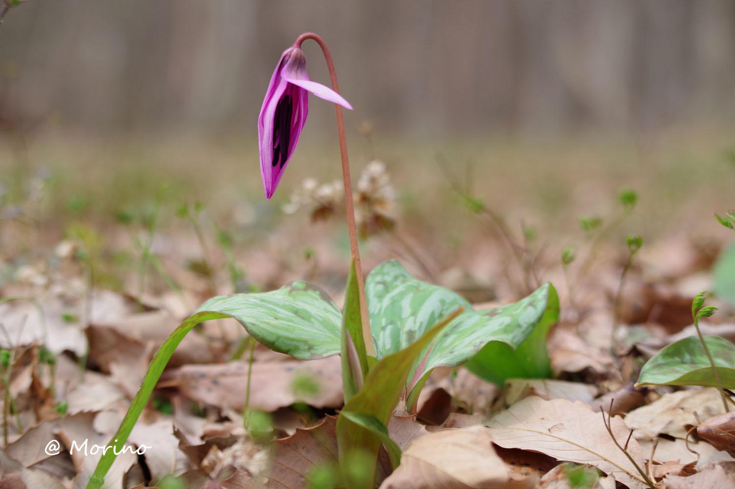 楽しい散策、昨年開花直前に蕾が提灯の様に膨らんだカタクリを見つけ、散策路左右を見ながら、でもなかなか見つからず