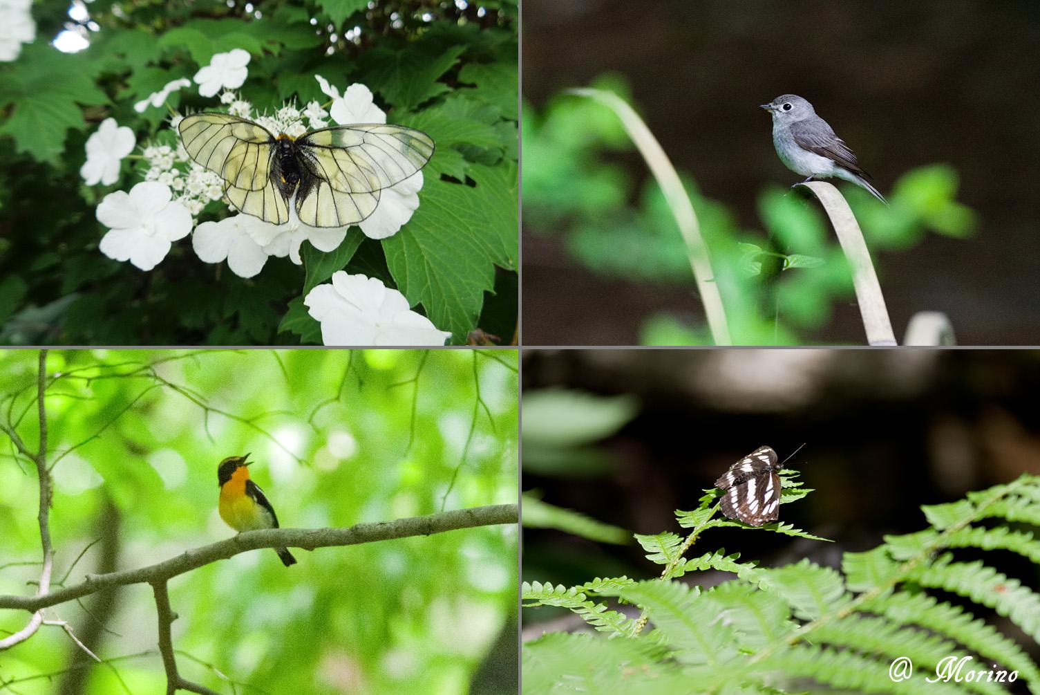 左上:カンボクで吸蜜する、ウスバシロチョウ