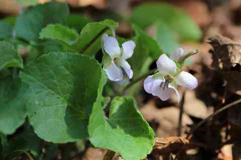 ナガバノスミレサイシンの近くにシロバナナガバノスミレサイシンが咲いていました すこし色がついているかな?