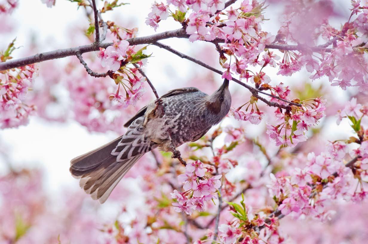 サクラで吸蜜するヒヨドリ、NHK+は放送から1週間視聴可