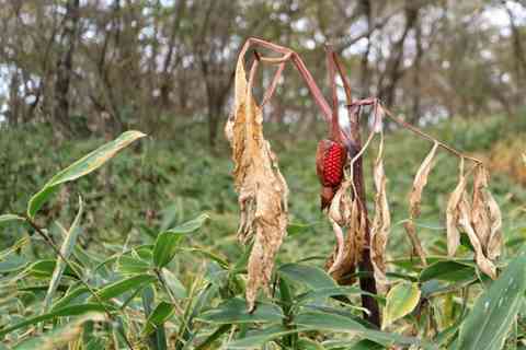 びっしりとついた果実の重みで折れたテンナンショウに秋の深まりを感じます。